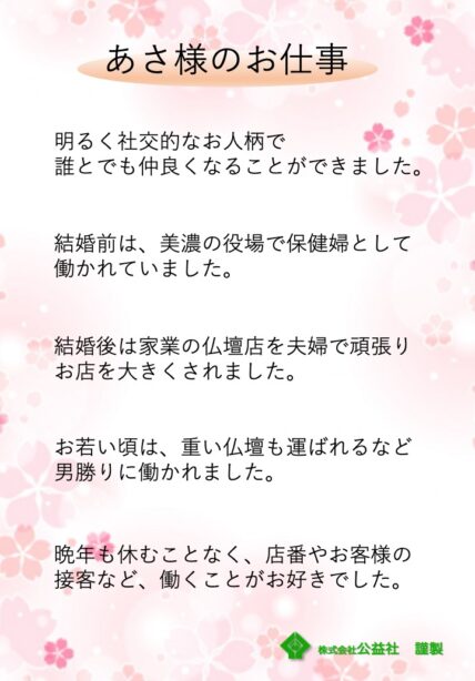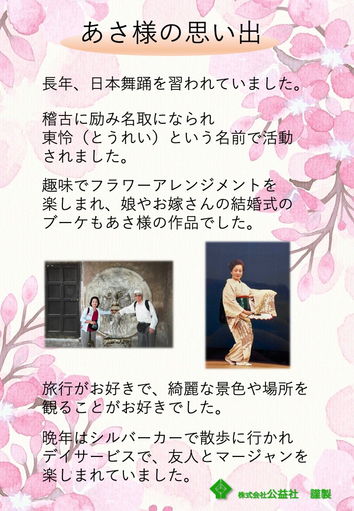 あさ様との思い出は