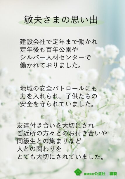 敏夫様との思い出は